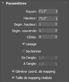 Immédiatement après avoir créé un objet, vous pouvez modifier ses paramètres tels que la taille et la forme en modifiant ses valeurs sur le panneau déroulant Paramètres dans le groupe de fonctions Créer.