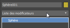- Dans le champ Nom de l'objet du groupe de fonctions Modifier, cliquez deux fois sur le nom Sphere001 pour le mettre en surbrillance.