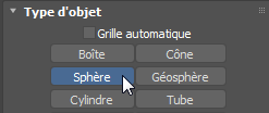 (Géométrie), puis, dans le panneau déroulant Type d'objet, cliquez sur Sphère.