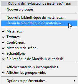3ds Max ouvre le Navigateur de matériaux/maps.