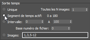 - Sélectionnez l'option Segment de temps actif dans la zone Sortie durée. (Si vous avez laissé ce paramètre défini sur Unique, seule apparaît l'image actuellement affichée.)