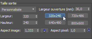 - Dans la zone Taille de sortie, remplacez la valeur par défaut (640 x 480) par 320 x 240.