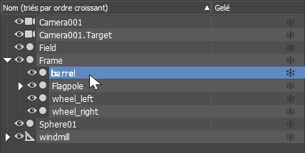 Après quelques instants, une info-bulle avec le texte Image s'affiche lorsque votre outil de sélection survole l'objet Image. Dans cette scène, l'image est l'objet parent du canon, ce qui signifie que si l'image se déplace, le reste de l'assemblage du canon l'accompagne.