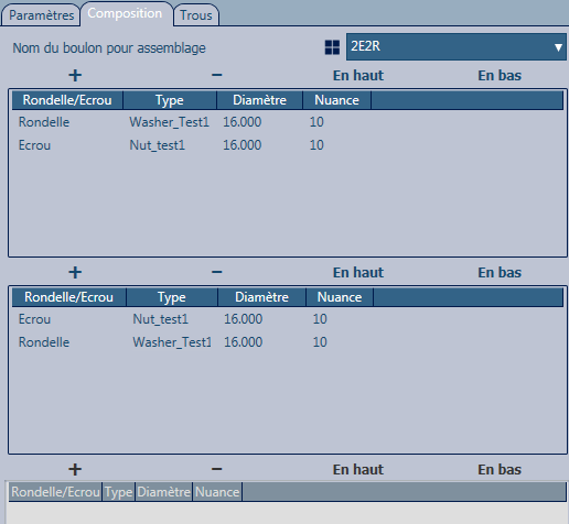 - Dans l'onglet Composition, utilisez le signe plus (+) pour ajouter des écrous et des rondelles à la composition.