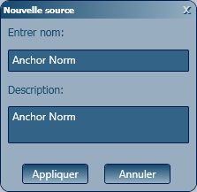 - Créez une source (norme) en cliquant sur le bouton Nouveau en regard de la liste déroulante du champ Source, entrez un nouveau nom et une description, puis cliquez sur Appliquer.
