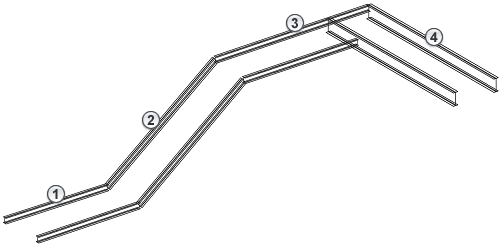 Conseil : Lorsque vous sélectionnez plusieurs poutres, le point de départ de la main courante doit se trouver sur la première poutre et l'extrémité sur la dernière poutre. Notez que chaque changement de direction représente un nouveau segment. Les segments peuvent couvrir plusieurs poutres consécutives.