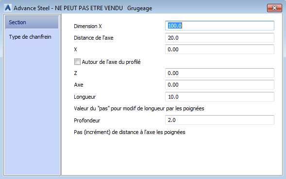 Définit la distance de la découpe vers l'axe de la poutre.