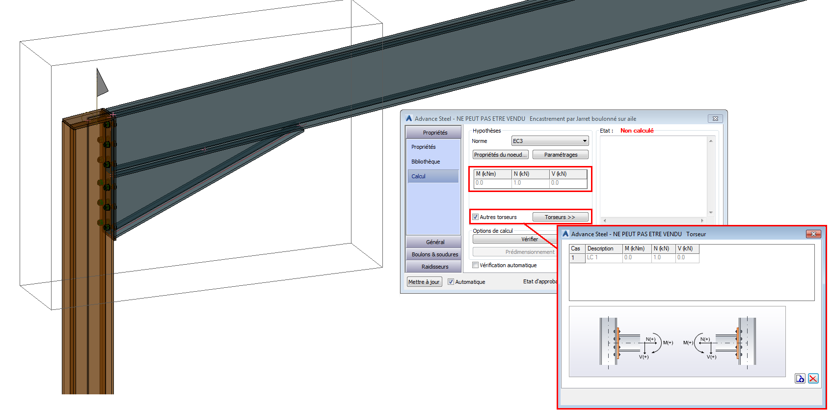 Pour ce faire, vous devez vérifier l'option Autres torseurs. Si vous appuyez sur le bouton Torseurs, une boîte de dialogue contenant tous les moments transférés depuis le noeud analytique.