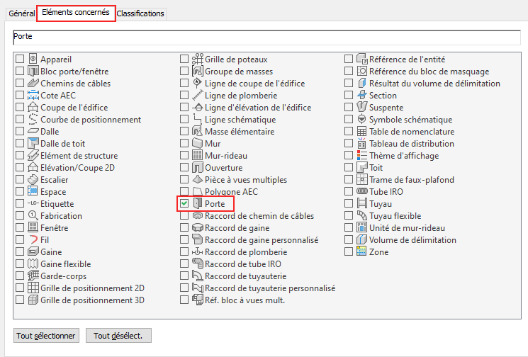 AutoCAD Architecture 2022 toolset prend en charge les définitions de classifications qui permettent de classifier les styles et les objets. Les processus d'exportation et d'importation dans IFC prennent en charge ces classifications affectées aux styles et aux objets.
