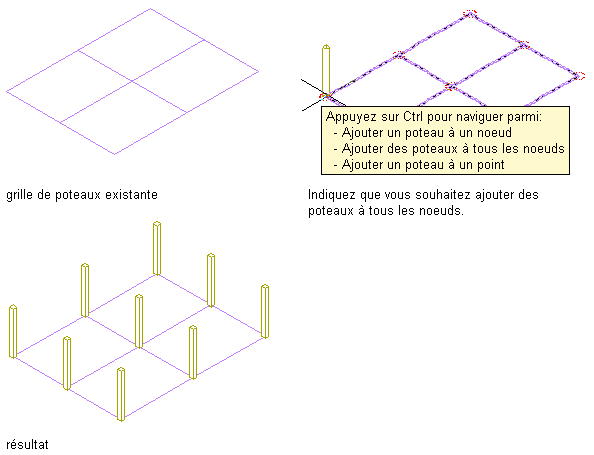 | ajouter un poteau à tous les noeuds de la grille | appuyez sur la touche Ctrl et cliquez. |