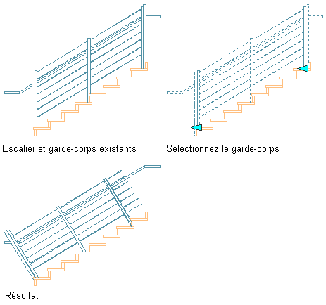 Une fois l'orientation de garde corps perpendiculaire définie, vous pouvez utiliser des poignées pour attribuer une orientation verticale aux premier et dernier poteaux.