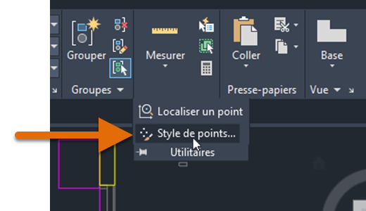 | MESURER | Crée des objets ou des blocs point en les espaçant selon des intervalles spécifiés sur la longueur ou le périmètre d’un objet. |