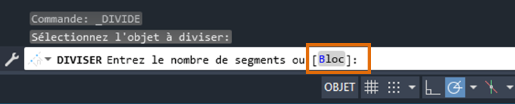 | DIVISER | Crée des points ou des blocs de manière régulière sur la longueur ou le périmètre d’un objet. |