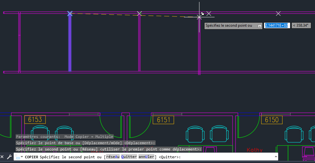 Maintenant, nous pouvons facilement déterminer où nos murs doivent aller. Utilisez la commande LIGNE pour créer un mur, puis la commande COPIER pour dupliquer un mur à l’emplacement de chaque point.