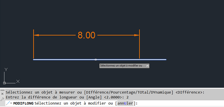 Sur la ligne de commande, vous pouvez éventuellement sélectionner un objet pour déterminer sa longueur actuelle.