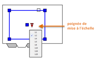 Sélectionnez la fenêtre de présentation souhaitée, cliquez sur la poignée de mise à l'échelle et sélectionnez une échelle dans la liste.