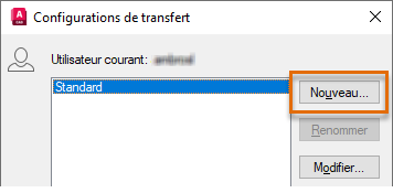 Dans la boîte de dialogue Configurations de transfert, sélectionnez la configuration de transfert standard et cliquez sur Nouveau.