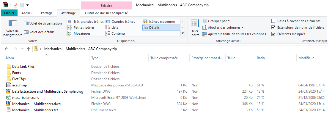 Accédez à C:\Program Files\Autodesk\AutoCAD <version>\Sample\Mechanical Sample and open Mechanical - Multileaders.dwg.