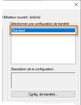 Dans la section Sélectionner une configuration de transfert, sélectionnez Standard.