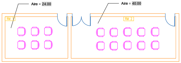 Vous allez insérer des étiquettes qui affichent l’aire des salles de réunion. Bien que les commandes AIRE ou MESURERGEOM ou la palette Propriétés affichent l’aire de la pièce, elles ne créent pas d’étiquette dans votre dessin. Nous allons utiliser des objets de ligne de repère multiple (LIGNEDEREPMULT) et des champs pour afficher l’aire. Pour obtenir des informations et des conseils sur l’utilisation de la commande LIGNEDEREPMULT, consultez Avez-vous essayé : lignes de repère multiples pour les étiquettes et les repères de vue.
