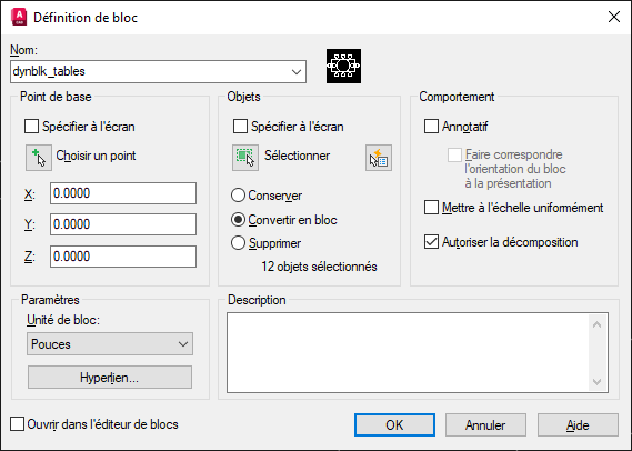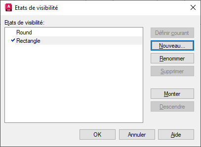 Grâce aux états de visibilité, vous pouvez créer un bloc avec le nombre de configurations différentes de votre choix. Dans cet exemple, vous allez créer un bloc représentant soit une table ronde avec 4 chaises, soit une table rectangulaire avec 8 chaises.