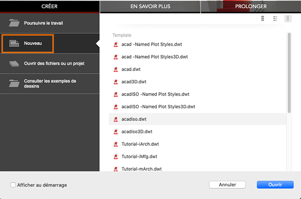 Après avoir lancé AutoCAD, cliquez sur l' dans l'écran de bienvenue pour commencer un nouveau dessin.