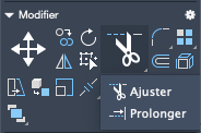 Une technique très répandue consiste à utiliser la commande DECALER en combinaison avec les commandes AJUSTER et PROLONGE. Dans la fenêtre de commande, vous pouvez entrer A pour AJUSTER ou PR pour PROLONGE. L'ajustement et le prolongement sont deux des opérations les plus couramment utilisées.