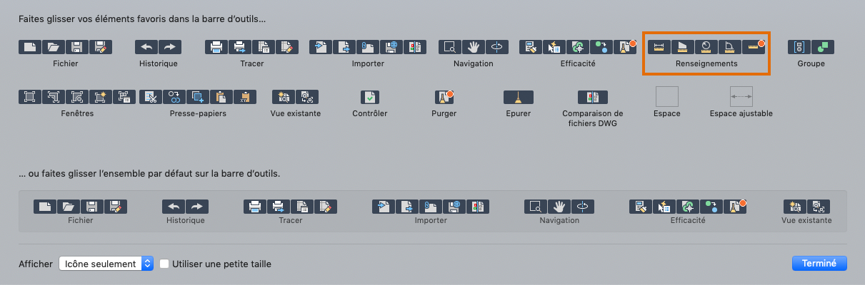 Vous pouvez également ajouter MESURERGEOM avec l'option rapide sur la barre d'outils.