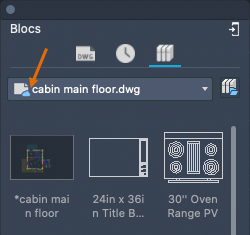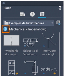 - Double-cliquez sur un dessin dans un dossier pour afficher les blocs qu'il contient. Utilisez le bouton Précédent pour revenir au dossier sélectionné.