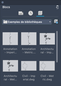 Remarque : Sélectionnez Bibliothèques d'exemples pour accéder aux bibliothèques de blocs héritées.