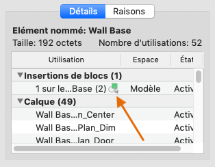 Vous pouvez afficher un aperçu et localiser les références des blocs ne pouvant pas être purgés du dessin courant.