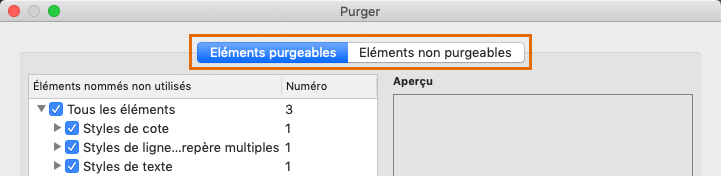 Deux vues sont disponibles dans la boîte de dialogue Purger :