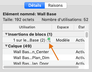 Dresse la liste des objets utilisés dans le dessin en cours et qui ne peuvent pas être purgés.