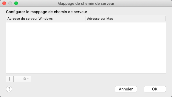 La boîte de dialogue Mappage de chemin de serveur s'ouvre.