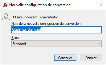 Boîte de dialogue Nouvelle configuration de conversion