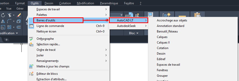 Remarque : Assurez-vous qu'un dessin est ouvert pour que le menu Outils soit inclus.