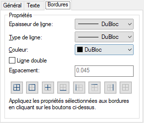 Gère l'aspect des bordures des cellules. Les propriétés de bordure sont l'épaisseur de ligne et la couleur des lignes de grille.