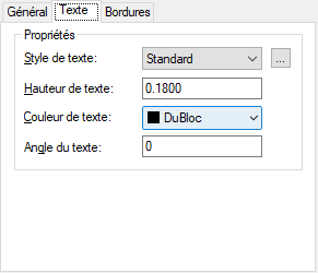 Définit l'angle du texte. L'angle du texte par défaut est de 0 degré. Vous pouvez entrer un angle compris entre -359 et +359 degrés.