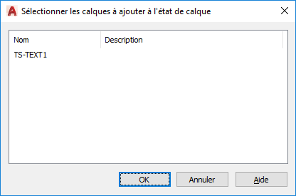 Affiche le nom et la description des calques qui n'ont pas été ajoutés à l'état de calque. Sélectionnez les calques à ajouter et cliquez sur OK.