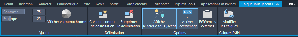 Onglet contextuel du ruban Calque sous-jacent DGN
