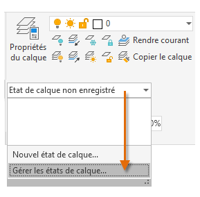 Vous pouvez enregistrer vos paramètres de calque sous la forme d'un état de calque que vous pouvez restaurer ultérieurement ou importer dans d'autres dessins. Un état de calque est comme un cliché des calques et paramètres de calque existants au moment de sa création.