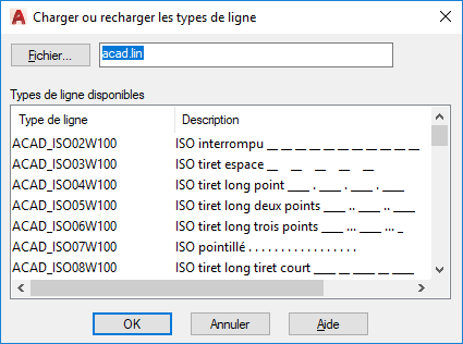 Charge un type de ligne dont la définition existe dans un fichier bibliothèque de types de ligne (LIN).