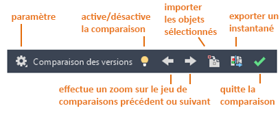 Utilisez l’une des méthodes suivantes pour ouvrir la barre d’outils Comparaison des versions dans le dessin courant :