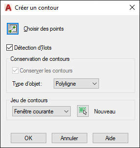 Détermine le type du nouveau contour. CONTOUR crée le contour sous la forme d'une région ou d'un objet polyligne.