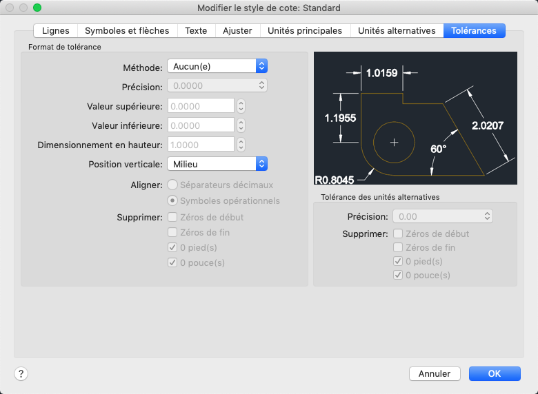 Spécifie l'affichage et le format des tolérances du texte de cote.
