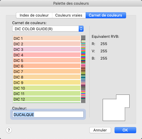 Indique le carnet de couleurs à utiliser lors de la sélection des couleurs.