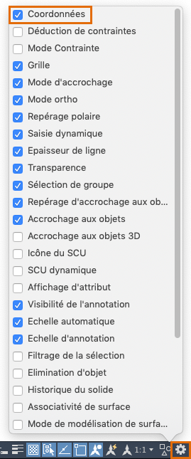 Pour modifier l'affichage des coordonnées dans la barre d'état