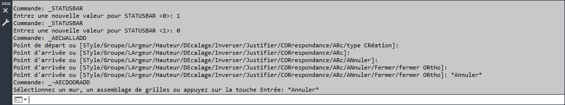 Vous pouvez directement saisir des commandes grâce la fenêtre de ligne de commande située au-dessus de la barre d'état.