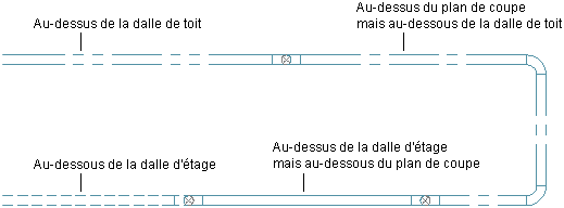 Dans certaines régions, les documents de construction doivent afficher les objets de système de construction différemment selon leur élévation. Par exemple, il peut vous être demandé d'afficher un objet sous la dalle d'étage dans la vue en plan avec un type de ligne et un autre objet au-dessus de cette dalle mais sous le plan de coupe avec un autre type de ligne.
