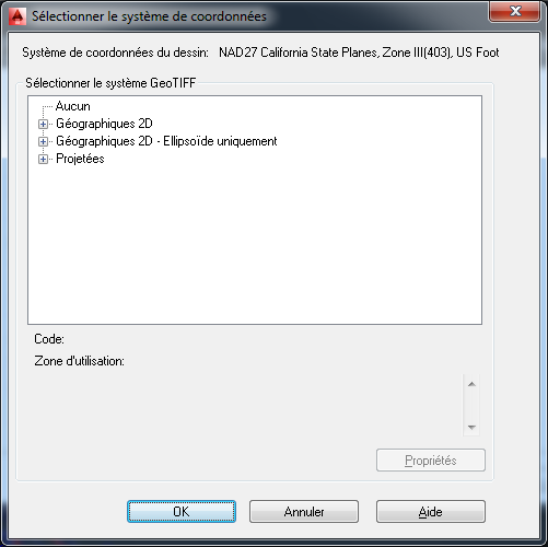 Indique le code GeoTIFF du système de coordonnées sélectionné.